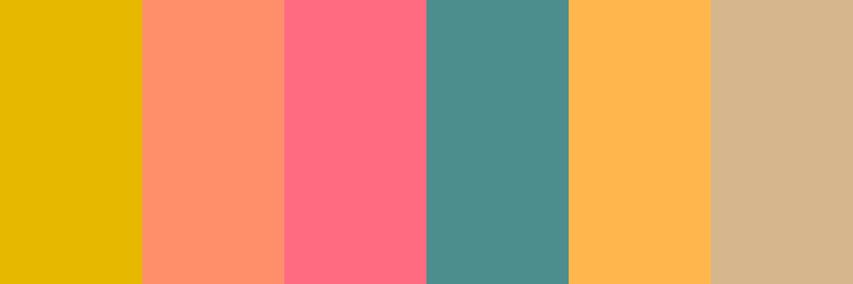 Here is a balanced warm retro color palette that includes yellows, pinks, and a variety of other complementary colors:
