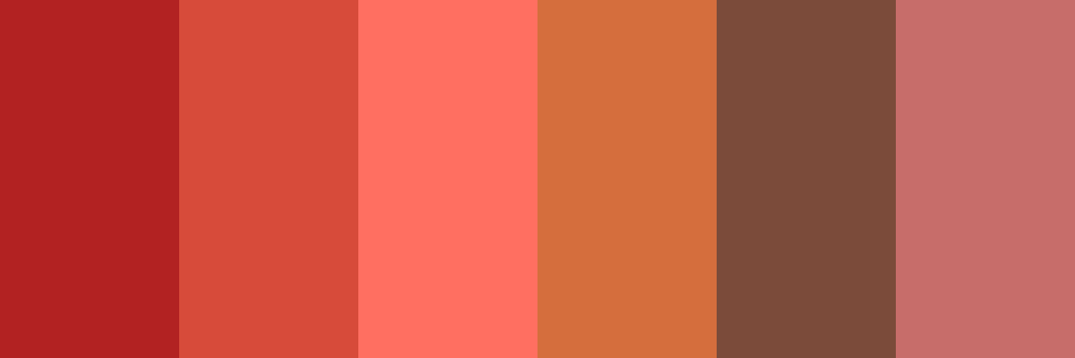 Here’s a color palette inspired by Brick, Warm Red, Burnt Coral, Terracotta, Cinnamon, and Spiced Rose: