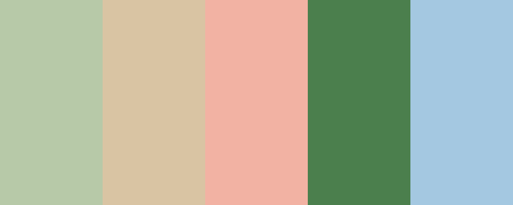 This palette incorporates serene blues and gentle greens, complemented by warm neutrals and hints of coral to create a warm and inviting atmosphere.