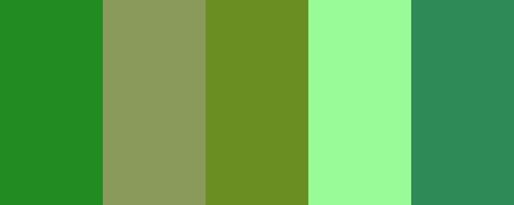 This palette features a variety of green shades that evoke the tranquility and freshness of nature, transitioning smoothly from deep forest greens to lighter, airy tones.