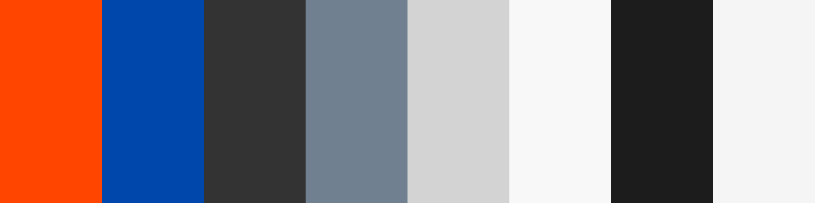 Here’s an 8-color palette that features two bright colors (red, orange, or yellow) paired with a matching blue, along with six neutral shades of gray, almost black, and white: