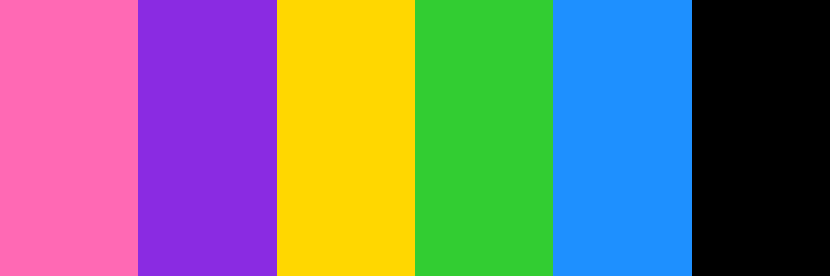 Here is a color palette based on your query, featuring shades of pink, purple, yellow, green, blue, and a contrasting color for writing.