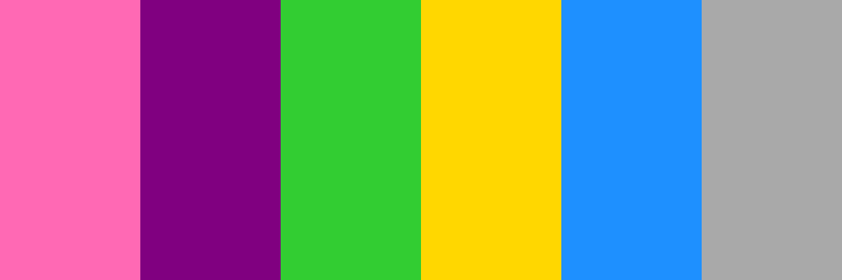 Here’s a vibrant color palette based on your request for pink, purple, green, yellow, and blue, along with a contrasting color for writing.