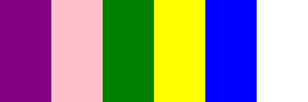 Here’s a color palette based on your query, featuring purple, pink, green, yellow, blue, and a color that can be used to write on them all (white).