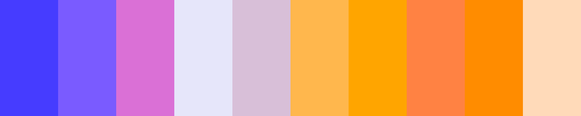 Here is a refined 10-color palette that has been adjusted for a smoother transition from purple to orange, ensuring that the colors flow better together: