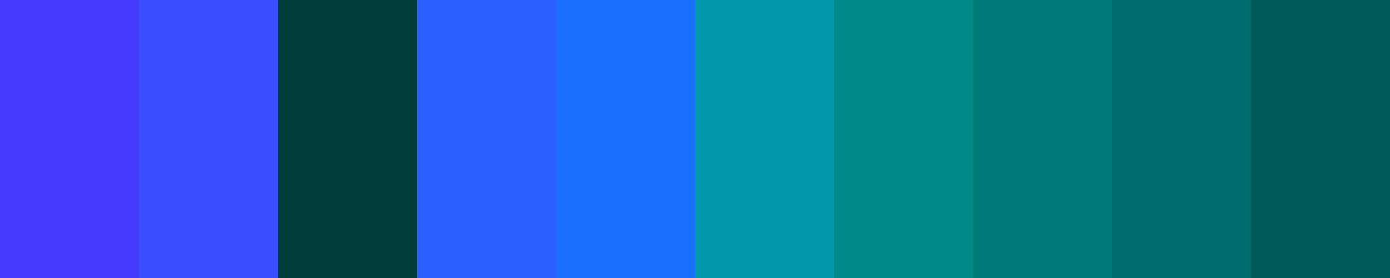 Here’s a 10-color gradient palette transitioning between #463CFF (deep blue-violet) and #003C3B (rich teal):