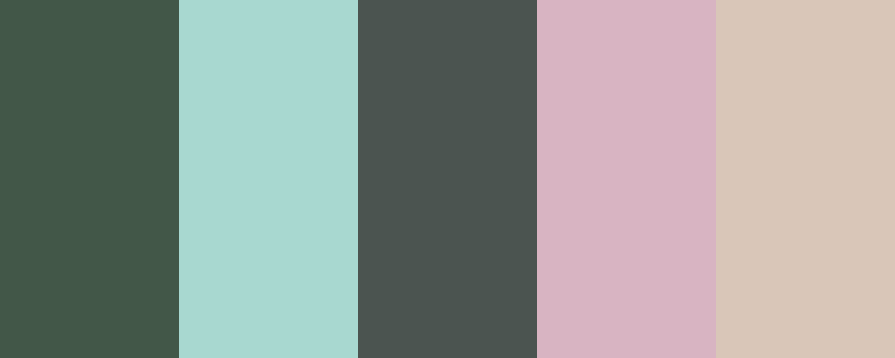 Based on the color code #425748 , I’ve created a color palette that complements this deep, muted teal. Here is the JSON object representing the color palette:
