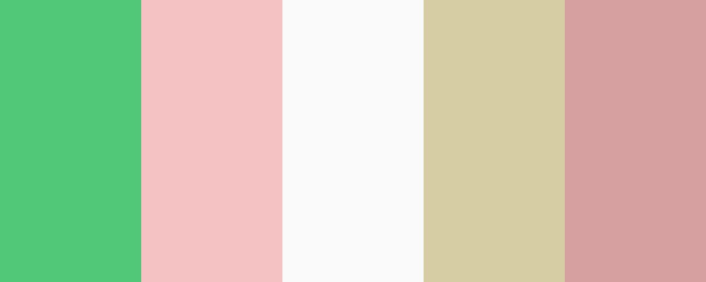 This palette combines the rich elegance of emerald green with the soft, romantic tones of blush pink, complemented by soft white, muted gold, and dusty rose. It creates a harmonious and sophisticated theme suitable for various design projects.