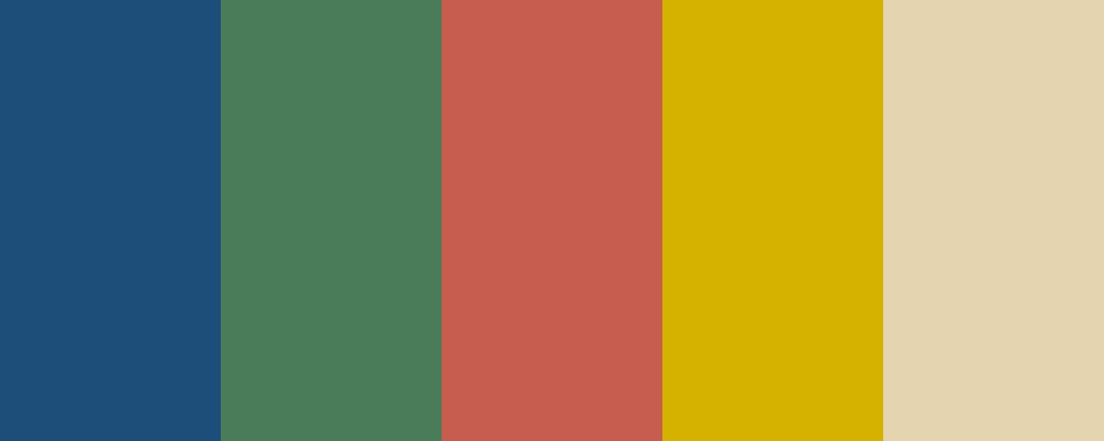 This palette features a blend of earthy tones and muted colors typical of the Pergamon style from the 1960s. The Vintage Blue signifies depth and stability, while the Muted Green represents nature and growth. Terracotta adds warmth and historical significance, Golden Yellow offers a touch of vibrancy, and Soft Beige provides a neutral backdrop for balance.