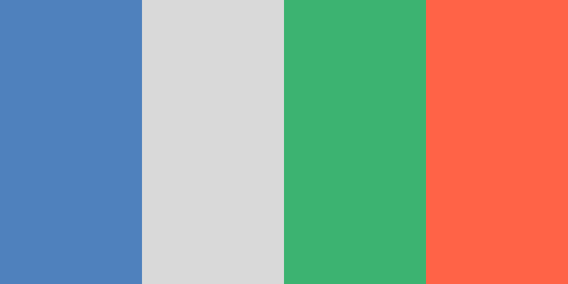 This palette features a professional blue as the main color, complemented by a soft gray for neutrality, a refreshing green for a touch of vibrancy, and a warm tomato red for emphasis or highlights.