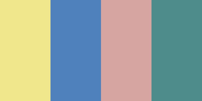 In this palette, the soft tones of Dusty Rose and Muted Teal complement the brighter Khaki and Steel Blue, creating a calm and inviting aesthetic.