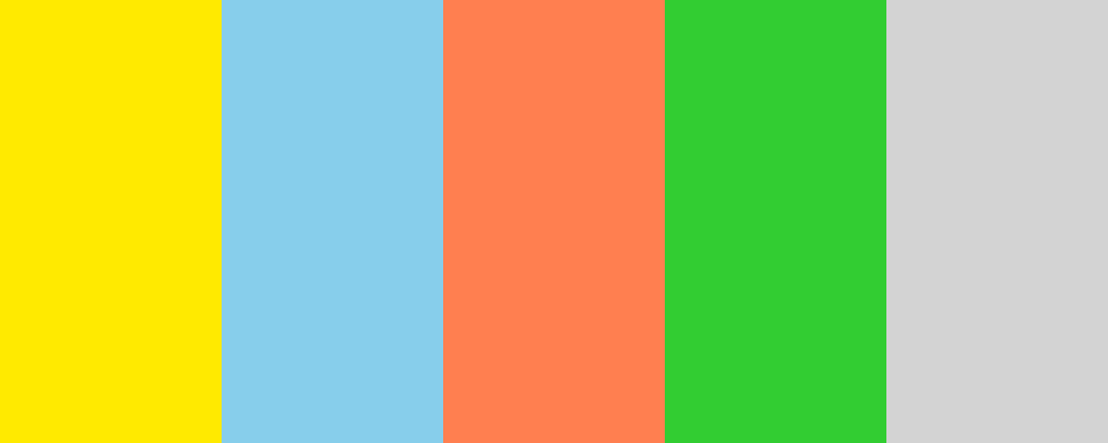 This palette features a vibrant bright yellow ( #FFEA00 ) that’s perfect for drawing attention to titles on images. The other colors, such as Sky Blue, Coral, Lime Green, and Soft Gray, provide a harmonious balance, making it suitable for various design themes.