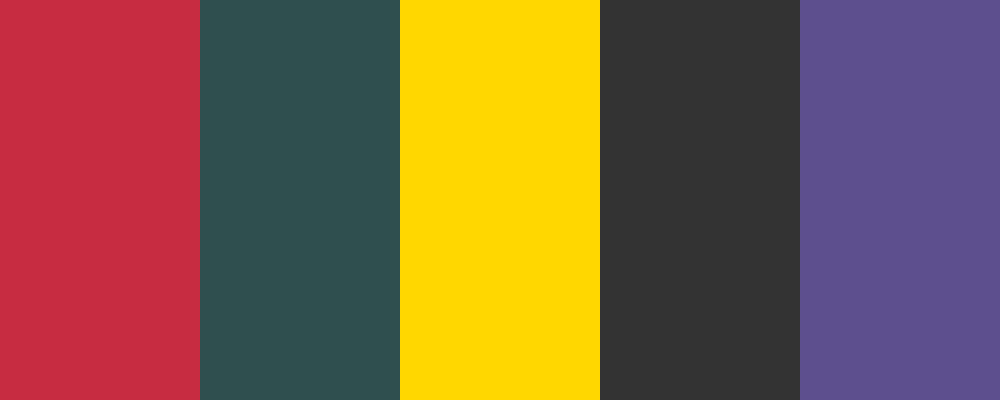 The “Sinner’s Remmick” palette combines deep, bold colors that evoke a sense of intensity and complexity. The crimson red symbolizes passion and temptation, while the dark slate gray adds a tone of mystery. Golden yellow injects a hint of allure, contrasting with the charcoal black that grounds the palette. Lastly, deep plum adds a touch of richness, rounding out this dramatic and evocative color scheme.