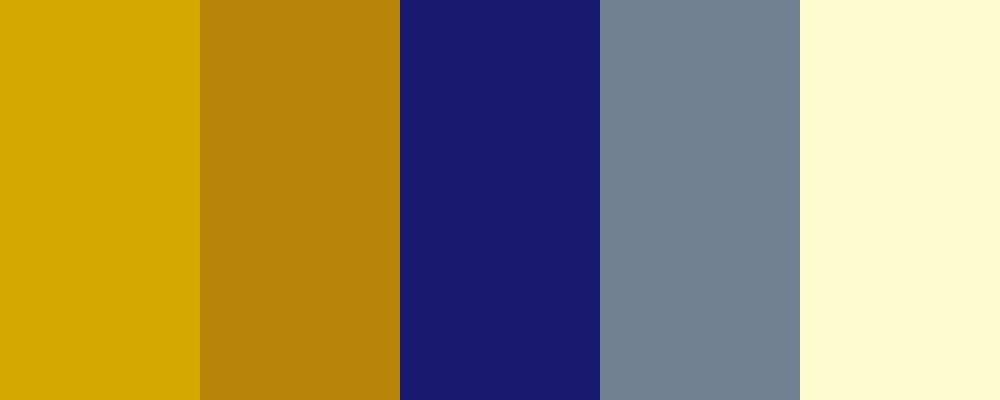 This palette blends rich mustard and gold tones with darker shades like midnight blue and slate gray, creating a sophisticated and elegant atmosphere.