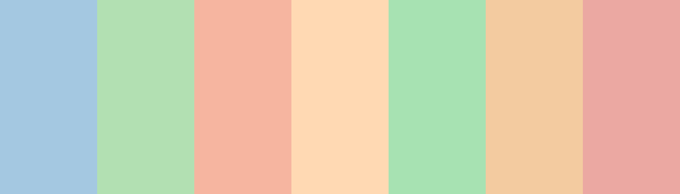 This palette features soft hues that maintain a lightness around 50% on the HSLuv scale, making them gentle on the eyes. The colors are selected to ensure they are distinguishable for individuals with color vision deficiencies, providing a balanced and harmonious scheme for various UI elements.