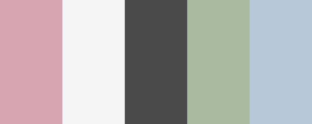 This palette features the soft and warm Sulking Room Pink as the main color, complemented by a soft white for brightness, deep charcoal for contrast, muted sage for a natural touch, and dusty blue for a cool accent.