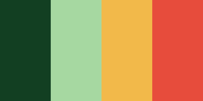 Here’s the complete palette now including a complementary error color that works well with your brand color #123F22 :