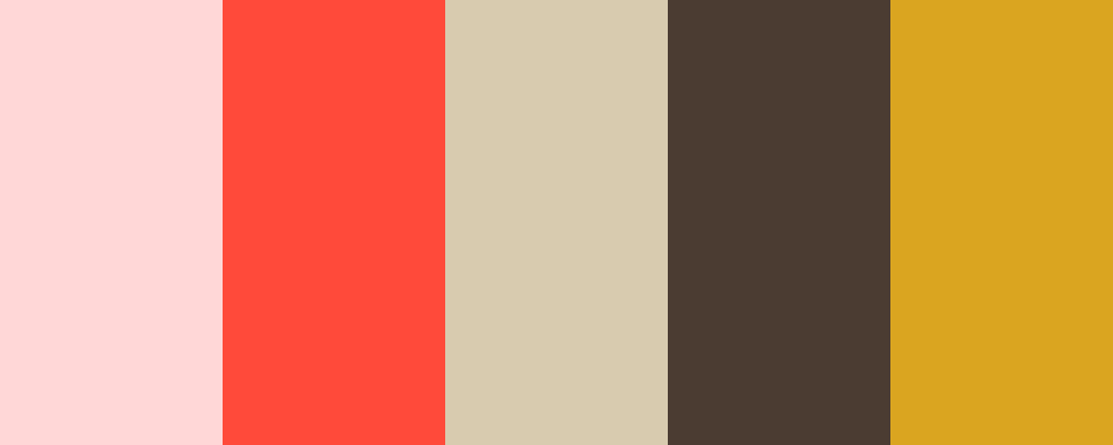 This palette features a mix of warm tones that provide a striking contrast to the pale pink background while maintaining a professional appearance. The deep coral and rich chocolate add depth, while the warm beige and goldenrod spark curiosity without being overwhelming.