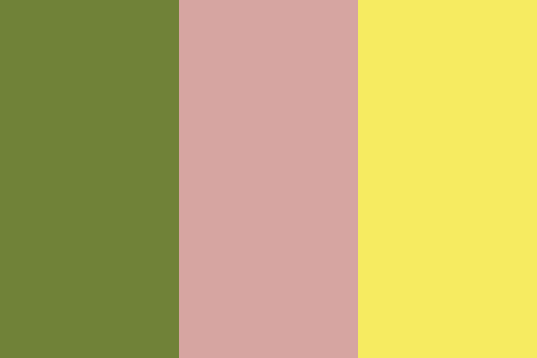 This palette combines the earthy tones of olive green, the soft and warm feel of dusty rose, and the bright and cheerful essence of sunshine yellow, creating a harmonious and inviting aesthetic.