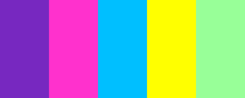 This palette features a combination of deep violet and hot pink, enhanced by electric blue and bright yellow for a lively contrast, while mint green adds a refreshing touch.