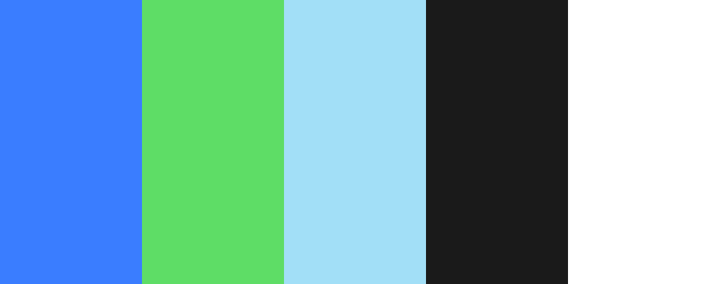 This updated palette features more vibrant shades that enhance the energetic feel while staying true to the original theme. The vibrant blue and lively green bring a sense of freshness and excitement, while the bright sky blue adds a cheerful touch. The dynamic black offers a modern twist, and the radiant white remains to provide contrast and balance.
