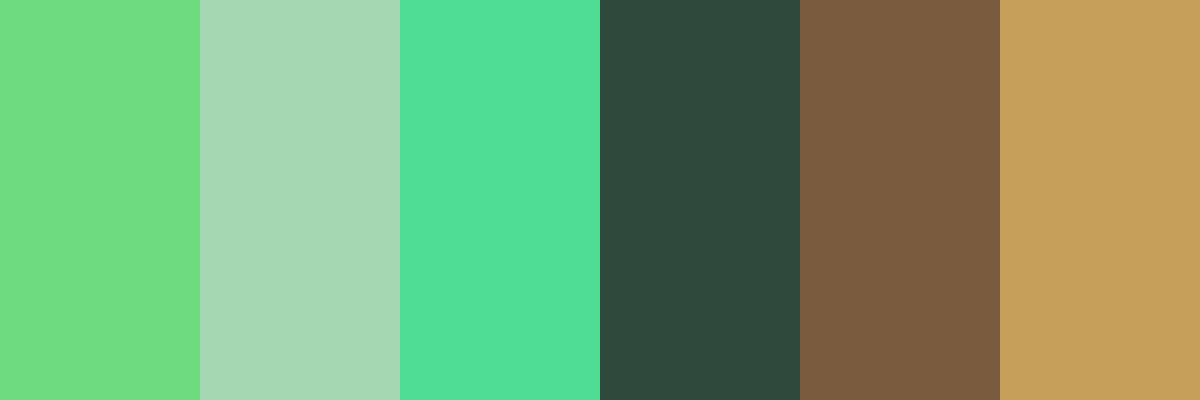 This palette features vibrant greens that evoke the lively settings often seen in anime, alongside warm earth tones that provide a balanced contrast.