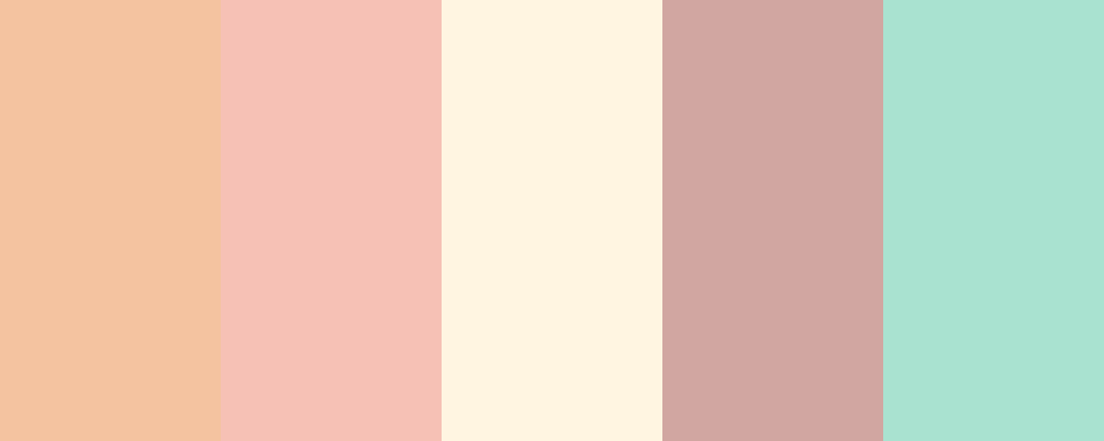 This palette captures the warm and inviting essence of Aristocrat Peach, complemented by soft coral tones, creamy whites, dusty rose shades, and a refreshing mint green for balance.