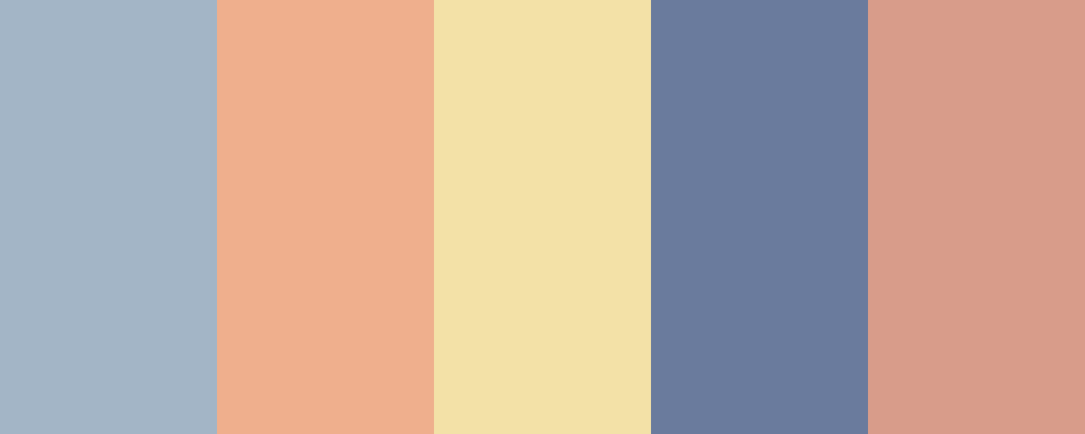This palette features low-saturation tones where the blues are prominent, while the soft oranges and pale yellows add a warm accent that maintains a retro-modern feel.