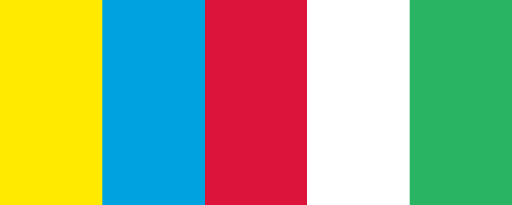This palette features bright and vibrant colors that complement each other well, making it ideal for a concert flyer. The use of yellow and green adds liveliness, while the blue and red provide a strong contrast, all balanced by the pure white.