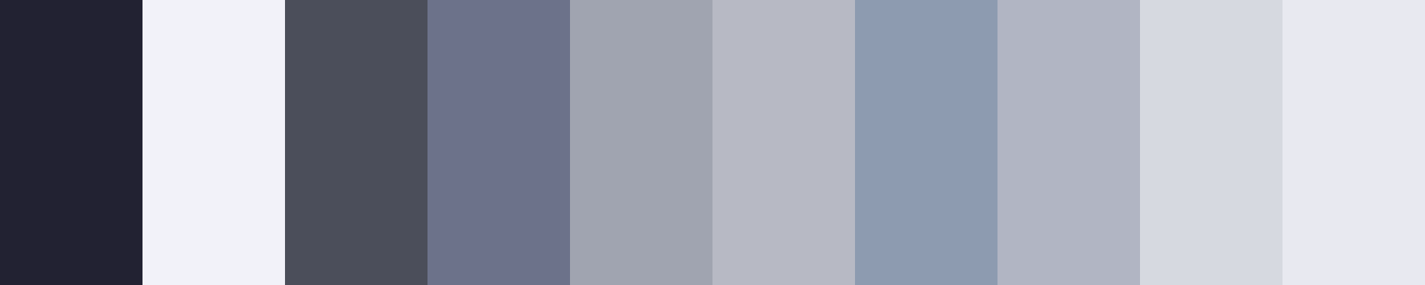 This palette features a range of grays with subtle blue undertones, perfect for a sophisticated dark mode design.