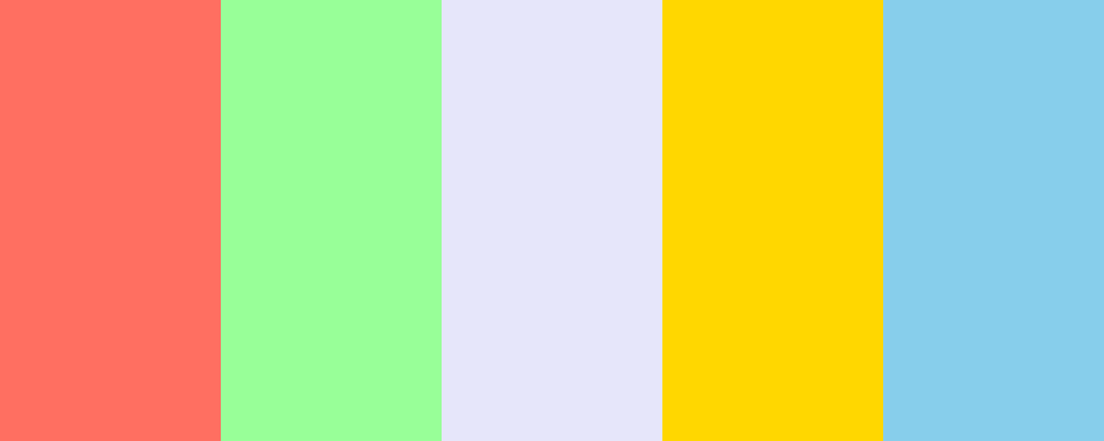 This palette combines warm and cool tones, creating a fun and inviting atmosphere that is perfect for a spring wedding. The coral pink and sunshine yellow bring warmth, while the mint green, lavender, and sky blue provide refreshing contrasts.