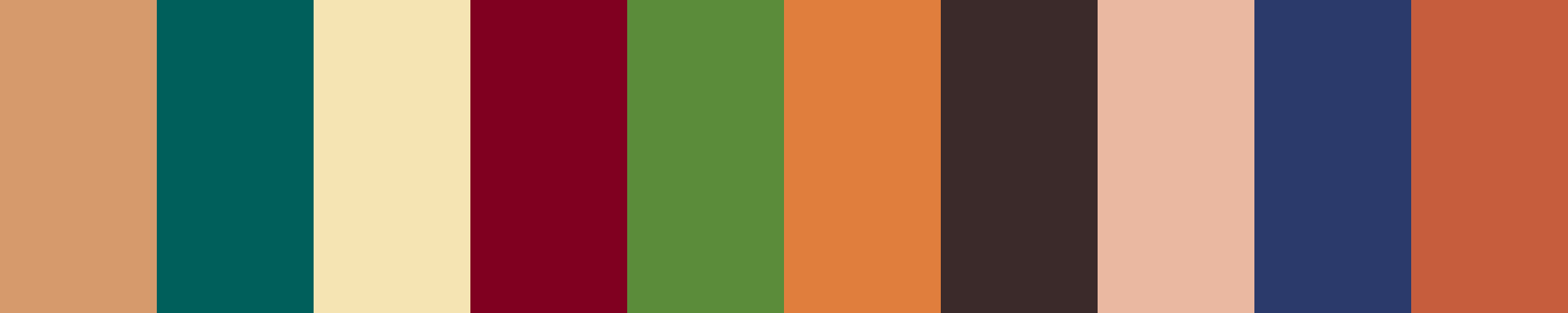 This palette, “Warm Earthy Tones,” combines rich, warm shades that evoke a sense of comfort and earthiness. The combination of earthy browns, warm creams, and deep, vibrant colors creates a harmonious blend that is both inviting and stylish. Perfect for a cozy interior, fashion design, or any creative project that seeks to embody warmth and depth.