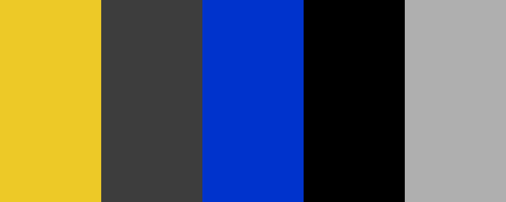 This palette combines a vibrant golden yellow, a deep charcoal gray, and a striking midnight blue, all set against a rich black background for a sophisticated dark theme. The addition of deep silver provides a subtle highlight.