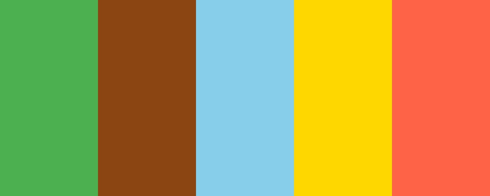 The “Farm Fresh” palette combines natural colors to evoke a sense of agriculture and sustainability. Leaf Green and Earth Brown represent the connection to nature and soil, while Sky Blue adds a refreshing touch. Sunshine Yellow symbolizes warmth and positivity, and Tomato Red brings in a vibrant, appetizing feel. This palette can effectively communicate the brand’s focus on fresh, farm-sourced products.