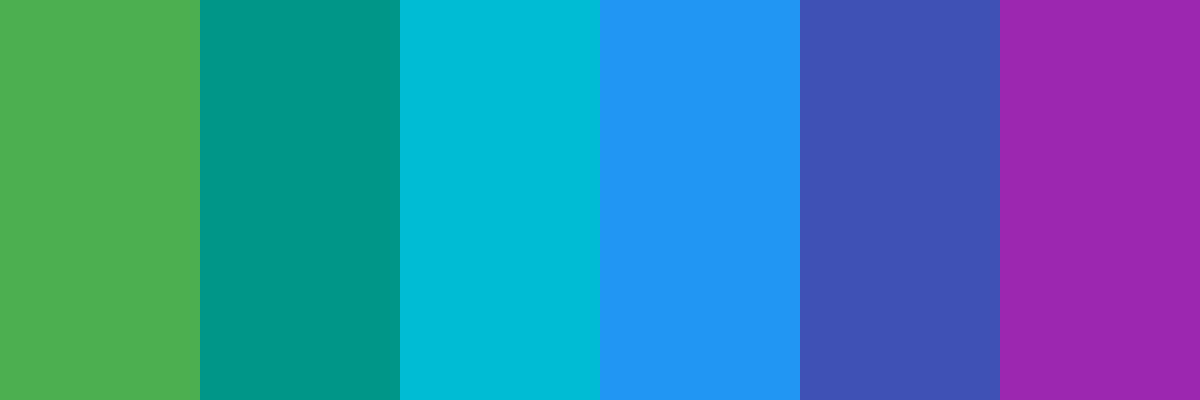 This palette features a smooth gradient from a vibrant green through teal and turquoise, transitioning into blue and indigo, and culminating in a rich violet. Would you like to explore any specific shades or perhaps a different color transition?