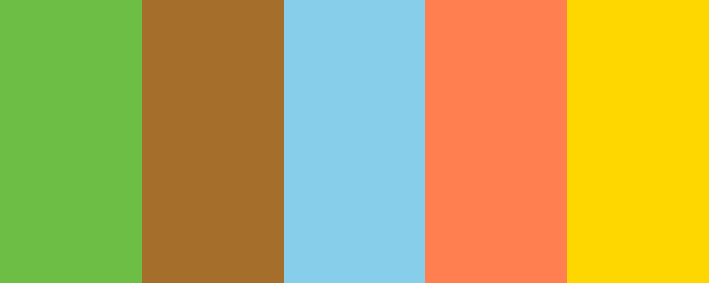 This palette reflects the vibrant colors found in nature, perfect for an ecological garden app. The greens represent plant life, browns symbolize earth, blues for the sky, pinks for flowers, and yellows for sunlight.
