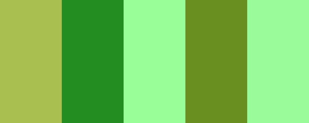 The “Fresh Greens” palette is inspired by the vibrant and refreshing shades of green found in nature. The main color, Lime Green ( #A9C050 ), brings a lively and energetic feel, while complementary colors like Forest Green and Mint Green add depth and freshness. Olive Drab introduces an earthy tone, and Pale Green softens the palette, making it perfect for designs that aim for an organic and revitalizing aesthetic.