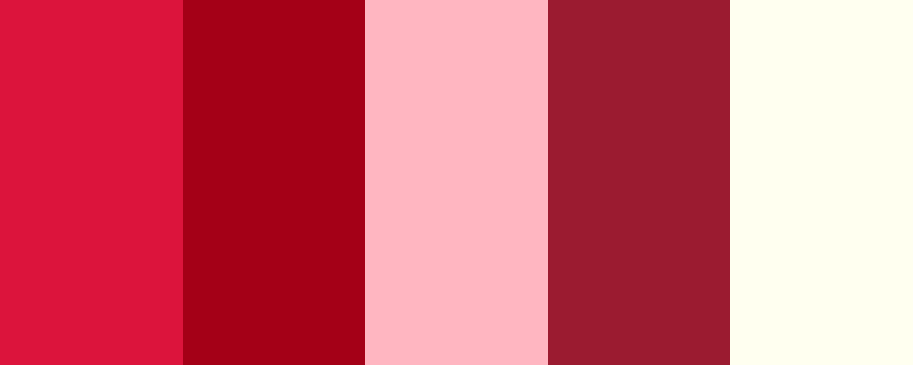 This palette captures the rich and vivid tones of crimson, blending deep reds with soft pinks and a touch of ivory for contrast.
