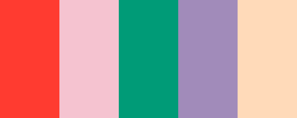 The “Cherry Blossom Dreams” palette features a lively cherry red as the main accent, balanced by a soothing pastel pink for warmth. The vibrant teal adds a refreshing touch, while the muted lavender provides a soft contrast. Finally, the soft peach rounds out the palette with a gentle, approachable tone.