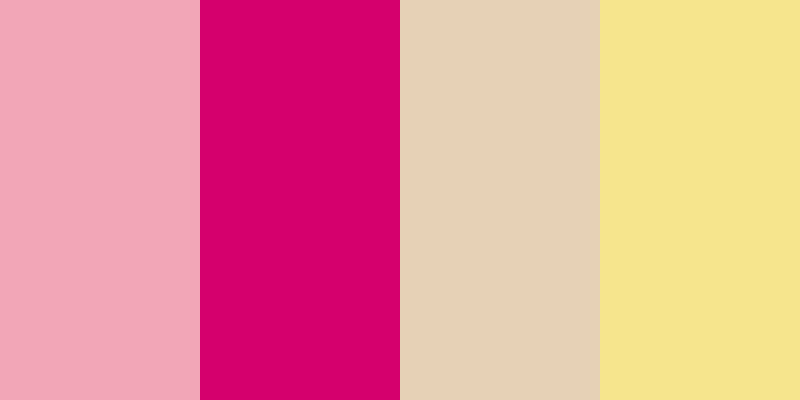 Here is a color palette based on your request for pastel pink with rani pink accents and creamy beige or butter yellow: