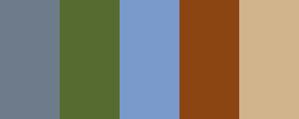This palette features muted, earthy colors that complement the slate grey of your original color. Would you like to explore more palettes or specific color combinations?