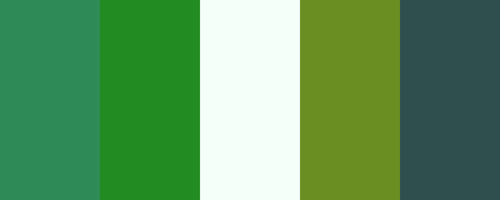 The “Emerald Forest” palette features a range of greens that evoke the tranquility and richness of a lush forest. The deep emerald serves as the base, complemented by a vibrant forest green, a soft mint cream for contrast, a warm olive drab for depth, and a dark slate gray to ground the palette.