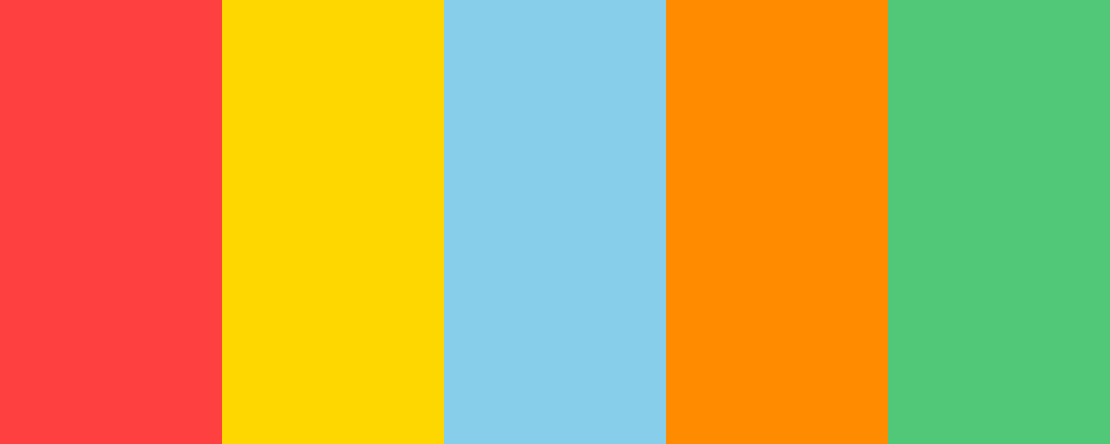 The updated palette maintains the vibrant essence of the original RYB theme while introducing softer and more modern shades. The Coral Red and Sunshine Yellow bring warmth and brightness, while the Sky Blue, Tangerine, and Emerald Green provide a refreshing balance.