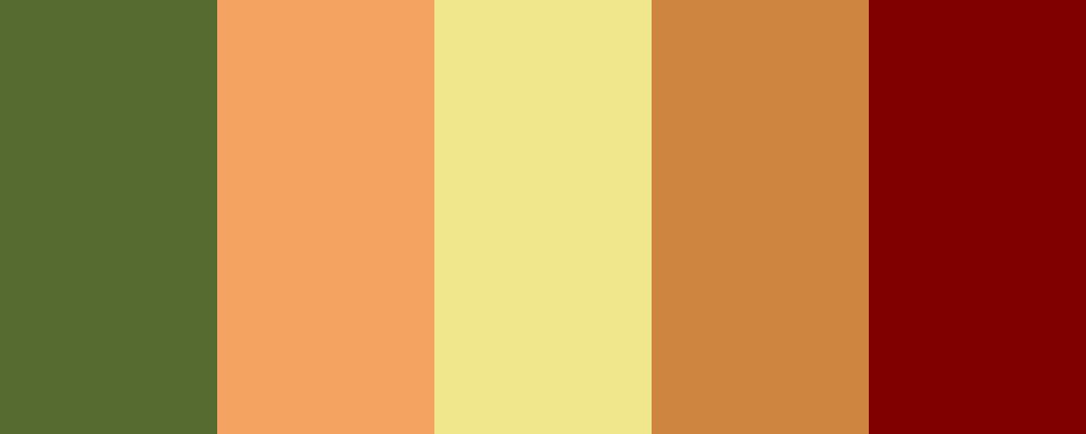 This palette features earthy tones that complement Dark Olive Green beautifully. The combination of warm browns and muted yellows balances the rich green, creating a harmonious and natural look.