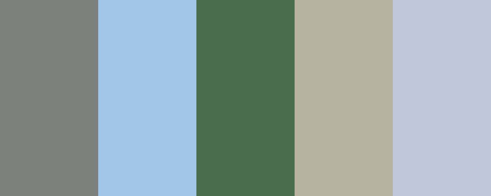 This palette captures the moody and atmospheric tones of a rainy morning surrounding an abandoned castle, with hints of grey, blue, and green to reflect the natural environment and dilapidated structures.