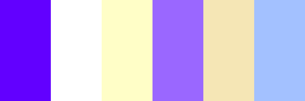 Based on your starting colors of #6200ff (a vibrant purple), #ffffff (white), and #fffec7 (a soft yellow), here is a color palette that complements and harmonizes these colors: