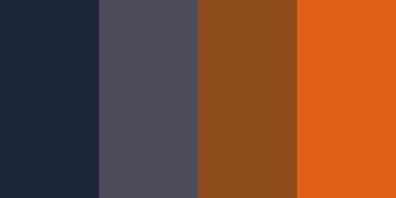 这个调色板从深邃的蓝色 ( #1D253A ) 过渡到温暖的橙色 ( #DF6014 ),中间通过渐变色 ( #4E4C5B 和 #8D4A1A ) 连接,展现了一个迷人的日落效果。