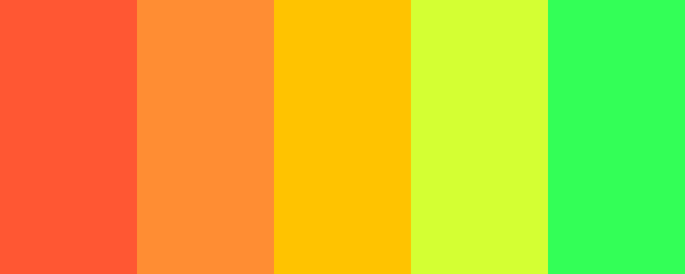 Bu palet, birbirine yakın tonları içeren bir dizi renk sunar. Kırmızıdan başlayarak, turuncuya, sarıya ve yeşil tonlarına geçiş yapar. Bu tür bir palet, görsel olarak uyumlu ve dengeli bir etki yaratır.