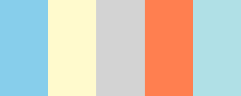 This palette features a combination of light and inviting colors, perfect for urban planning and architectural designs. The Sky Blue represents the police zone, providing a calm and secure feel. The Soft Yellow can indicate areas like transport, adding warmth and brightness. Light Gray can be used for garages or neutral spaces, while Coral adds a pop of color for attention in specific zones. Lastly, Powder Blue complements the police area without being overpowering, maintaining a cohesive look throughout the design.