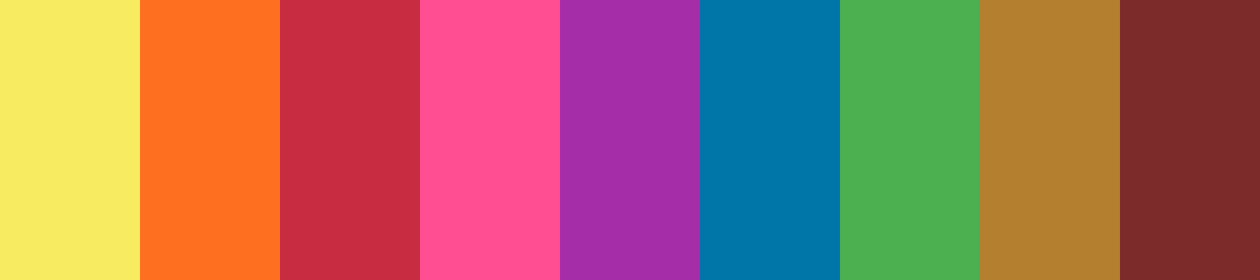 Here is a vibrant color palette inspired by the 1970s Rainbow theme, featuring nine distinct colors that evoke the bold and nostalgic aesthetic of that era.